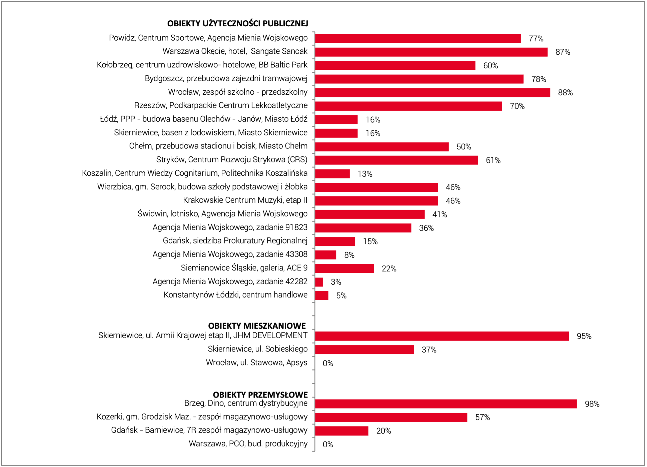 Projekty realizowane przez spółkę JHM DEVELOPMENT. Stan zaawansowania prac na dzień 31 marca 2026 r.: