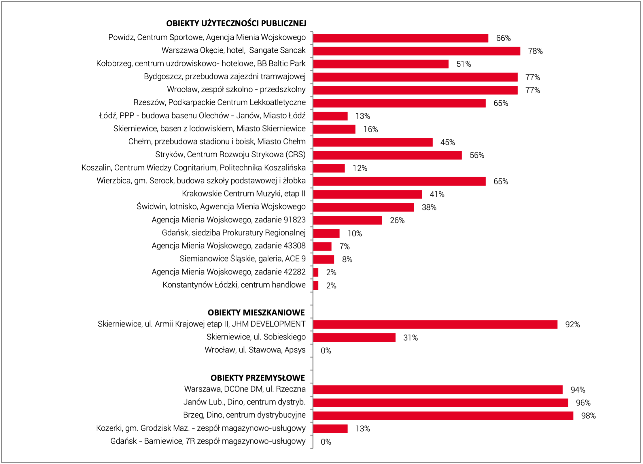 Projekty realizowane przez spółkę JHM DEVELOPMENT. Stan zaawansowania prac na dzień 31 stycznia 2026 r.: